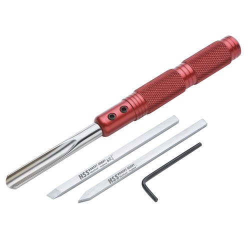 With a durable aluminum handle and three interchangeable blades,this modular set quickly transitions from one turning tool to the next. Perfect for pen turning and other small spindle work! It includes a 1/2" gouge, 1/4" skew and 5/32" beading/parting tool to produce beautiful, intricate pieces. As part of the Robert Sorby modular micro tool system, the included handle accepts all other Sorby Micro attachments.Includes:* Aluminum handle (5-3/4" long) * All-purpose gouge blade (1/2" W)* Skew blade (1/4" W)* Beading and parting blade (5/32" W)* (2) allen wrenches* Instruction leaflet